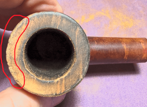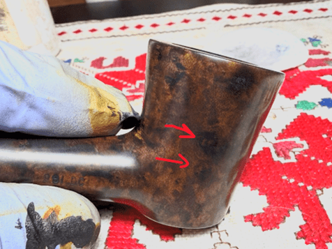 Of concern as well is the burn spot. Often, damaged dark briar like this is not just on the surface but runs deeper.