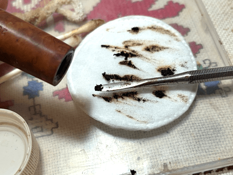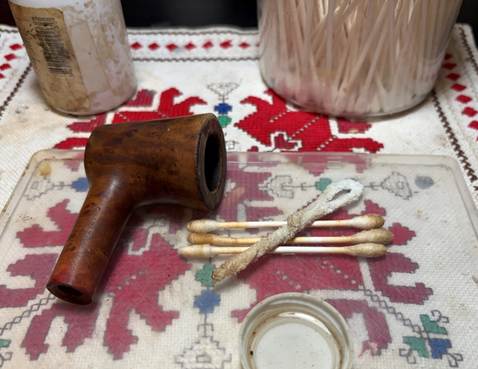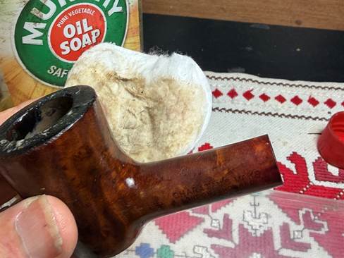 Next, the external briar surface in cleaned using undiluted Murphy Oil Soap and a cotton pad.