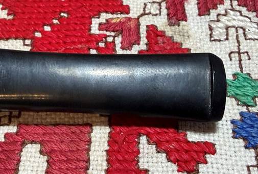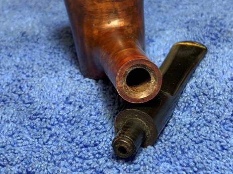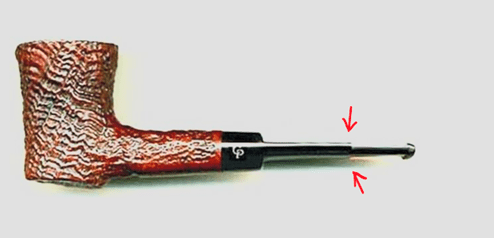 From another very helpful Pipedia article on dating Charatan pipes, the information is corroborated above that our pipe is a First Lane period pipe dating 1961 to 1965 (Dating of Charatans – Pipedia) but this article provides pictures of examples of pipe’s from specific Charatan’s eras. The picture provided just happens to be the same shape and appears to be the same line, “SPECIAL” as our pipe. This pipe is what we should be seeing with regard to the stem – the CP stem logo and the unique step-down of the ‘Double Comfort’ stem. I’ve marked the place in the stem where there is a ‘step-down’ to the bit. Beneath it is another example of the step-down that is clearer. The good news is that although we appear to have a replacement stem, that stem fits perfectly.