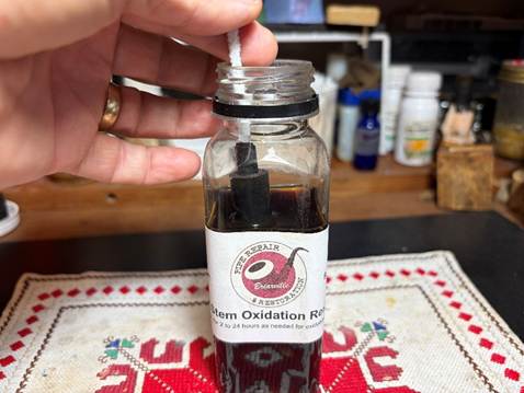 To address any oxidation the stem may have, the stem is given a soak in Briarville’s Pipe Stem Oxidation Remover for several hours.