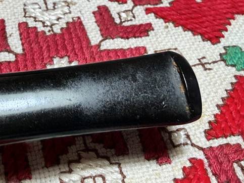 The other designator is the introduction of the Double Comfort stem with the ‘DC’ stamp following the shape number which our Charatan has. Unfortunately, while this information helps us confirm the dating between 1962 and 1965, it also reveals that our pipe appears to have a replacement stem – not an original Double Comfort described.