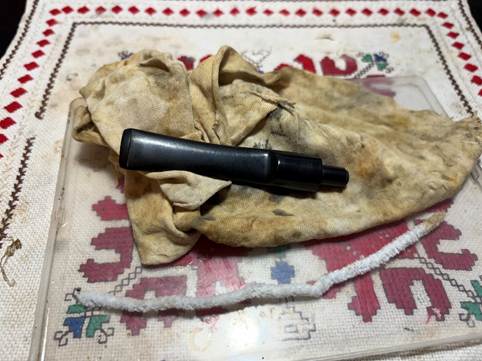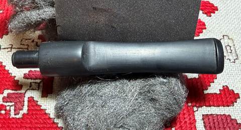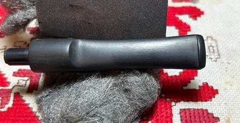 With the main cleaning process completed, the attention is turned back to the stem which has been soaking in Briarville.com’s Pipe Stem Oxidation Remover. I did not see any oxidation before the soak, but to make sure the stem was free of oxidation, the stem was given the soak. A cloth is used to rub rigorously the stem surface to wipe away any oxidation that surfaced during the soak. A pipe cleaner moistened with isopropyl 99% alcohol was used to clear the liquid from the airway.