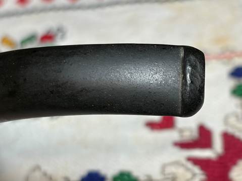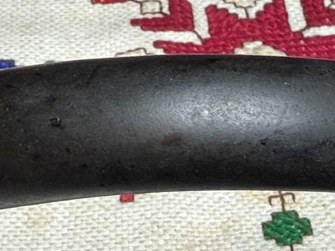 The horse has been ridden – no doubts about that. The heel of the Horse has a keel-like ridge running down the center. The panels created on both sides of the keel have scratches and dents.