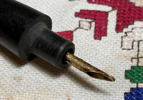 As the vulcanite rubber warms, pressure from the pipe cleaner continues and eventually it forces the slot open and passes through.