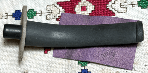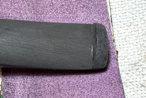 Next, the finer 320 grit paper is used on the entire stem with the shoulder guard.