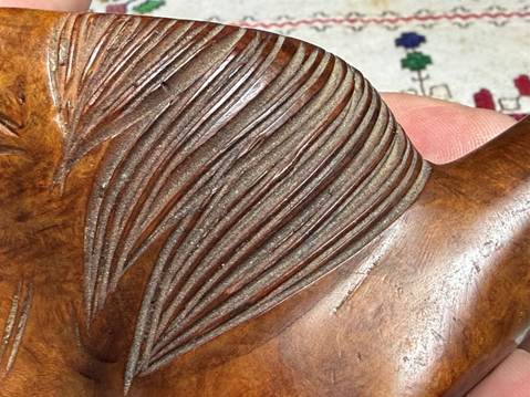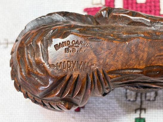 The information from Pipedia describes American artisans fashioning these figurals. However, of interest is that our Horse is stamped with the COM, MADE IN ITALY which is an indicator that Bob Marx reached out further than only US artisans. In contrast, the COM of the Alligator above is stamped: HAND CARVED [over] U.S.A.