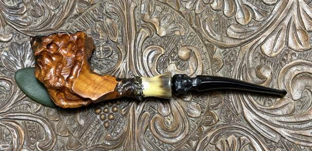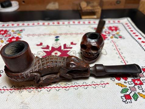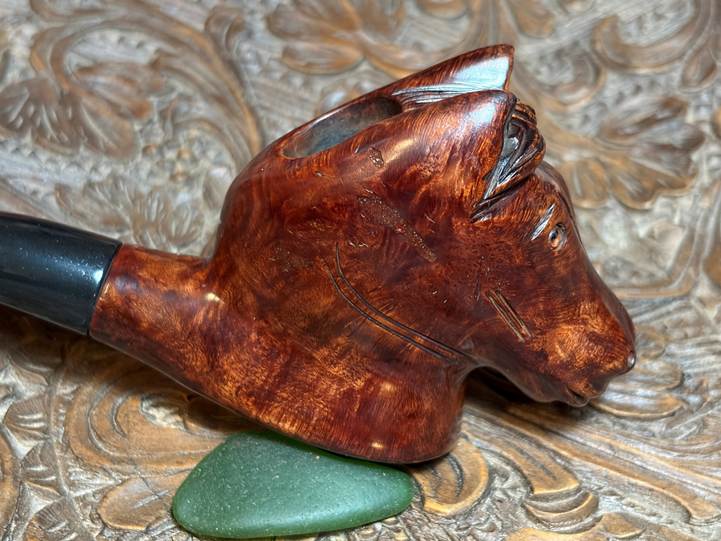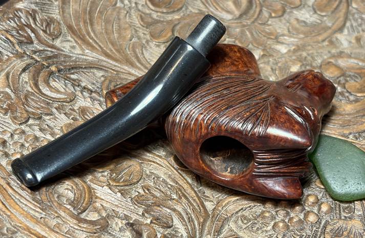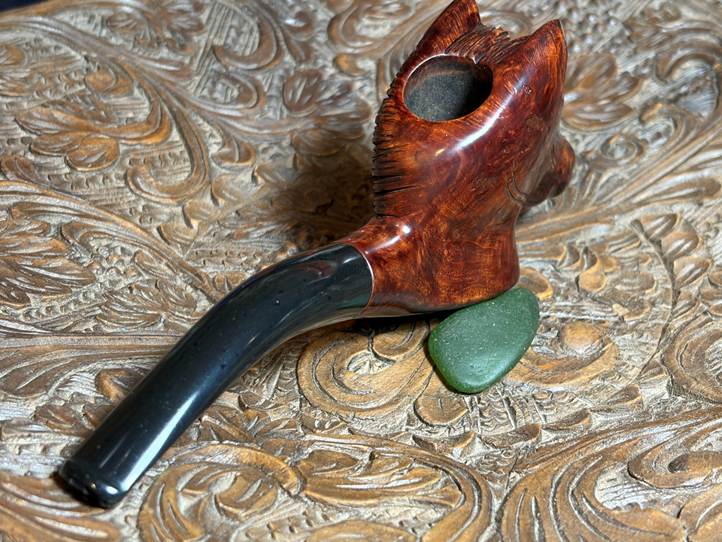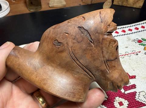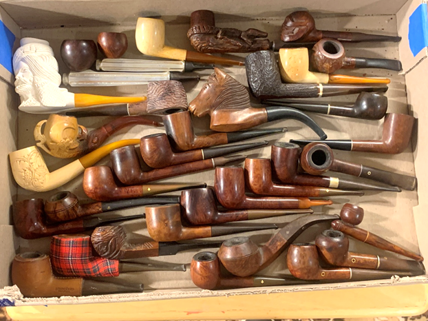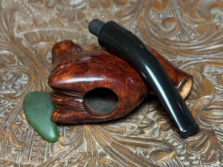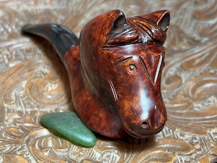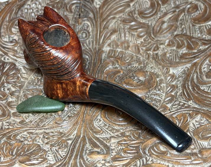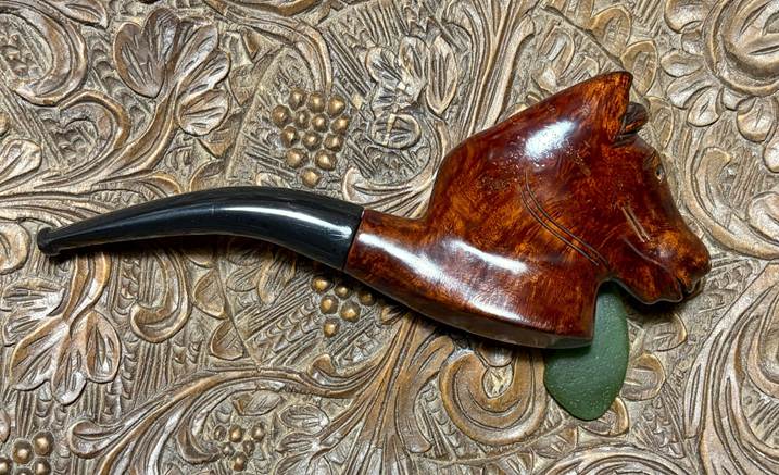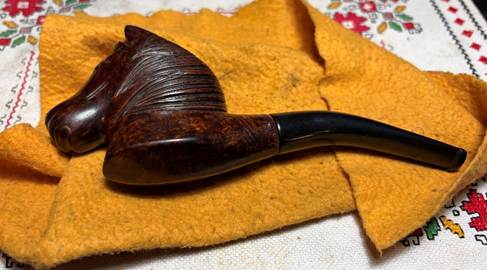 The next pipe on the worktable came to me in a Lot of 35 pipes from Corey from Orange, California. He reached out to me after discovering a box of pipes in the attic. The pipes had belonged to his father who passed away 10 years earlier. The amazing thing that Corey shared with me was that he didn’t know that his father had smoked a pipe. After asking his mother, she confirmed this and said that one day he simply had put them away. Corey was interested in knowing the worth of his dad’s pipes and after he sent several pictures of the pipes, my offer to purchase the pipes was good for him and after he took a few as remembrances of his father, he sent the rest to me. Corey’s dad certainly had some unique and vintage pipes. The picture below I took after the pipes arrived in Colorado. These pipes have not yet been posted in the online For “Pipe Dreamers” ONLY! collection, but if one catches your attention send me a note! The Marxman Big Horse Figural is not hard to find.