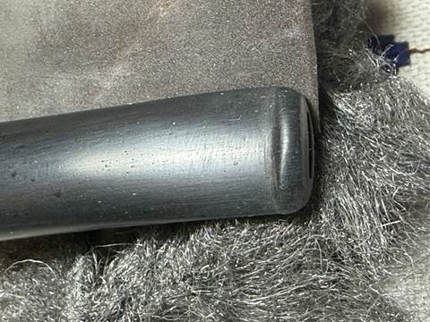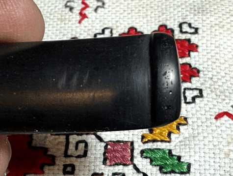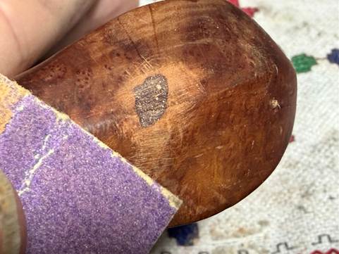 I had completed the next steps of sanding the stem by wet sanding with 600 grit paper and then applying 0000 grade steel wool when I saw the air bubbles emerge on the button repair. Air bubbles is an unfortunate thing that happens.