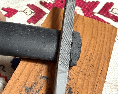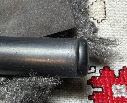 Finally, the last vestiges of carbon are removed by sanding the chamber with 220 grit paper wrapped around the dowel rod.