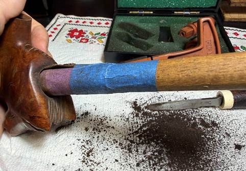 With the stem soaking, it’s time to work on the Horse. First, the chamber is reamed. Two of the 4 blades available in the Pipnet Reaming Kit are used.
