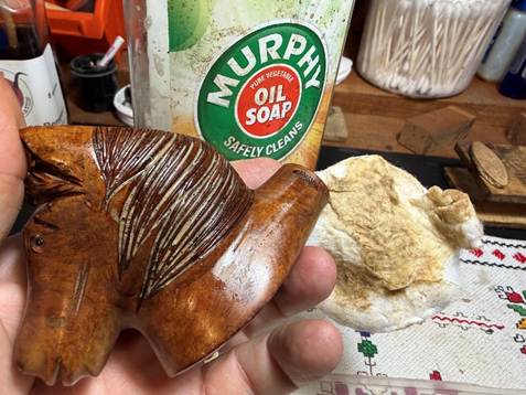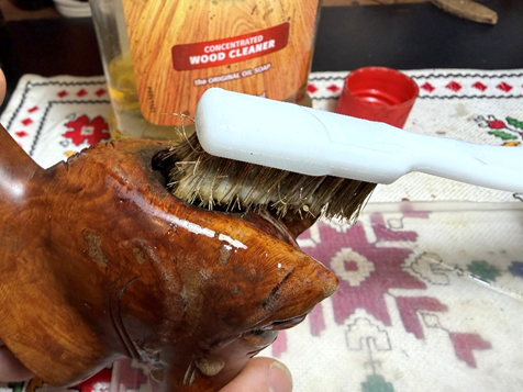 The external briar is cleaned next with undiluted Murphy Oil Soap and a cotton pad.