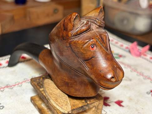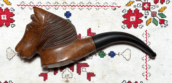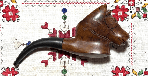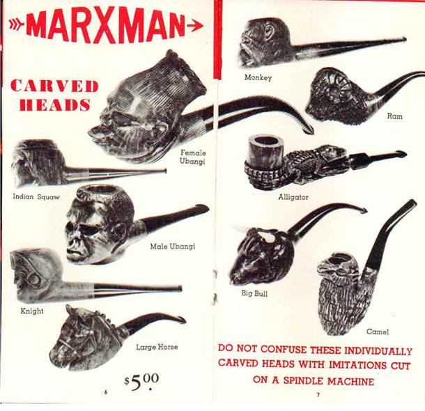 It would seem that our figural might be part of the Marxman Heirloom Pipes series that includes sculpted animals. The following ad is from a circa 1950s Marxman catalog (from the now defunct Chris Keene’s Pipe Pages) which shows a Large Horse Figural not exact as ours, but since they are hand sculpted, one would not expect an exact copy factory reproduction.