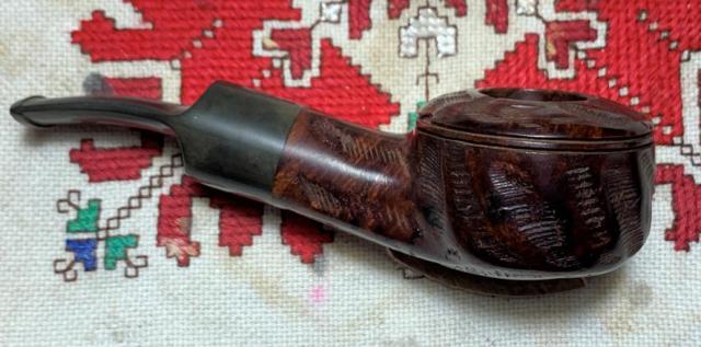B#8625 Medico Ventilator Blasted Imported Briar – I acquired this Medico with 8 other pipes that were inside a pipe cabinet at the Brass Armadillo in DesMoines, Iowa. Length: 5 1/2 inches, Height: 1 1/2 inches, Rim width: 1 3/16 inches, Chamber width: 7/8 inches, Chamber depth: 1 3/8 inches.