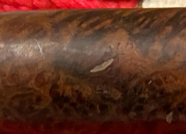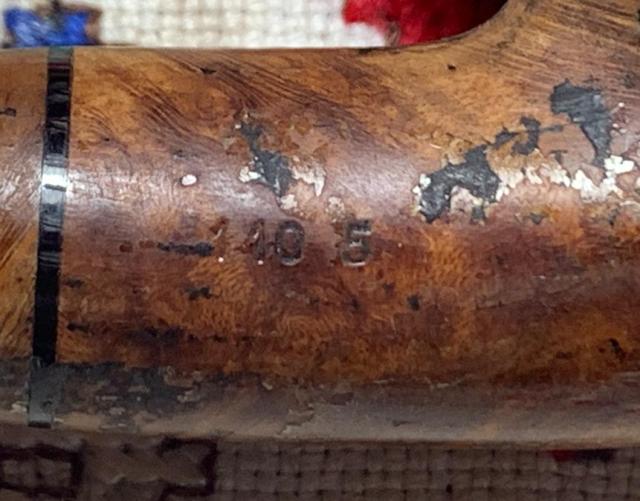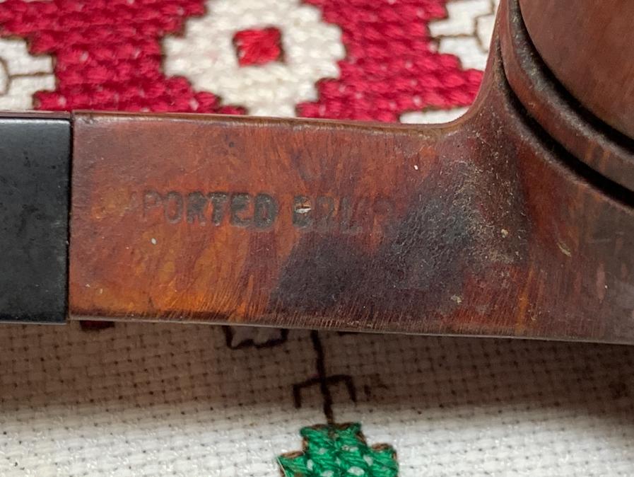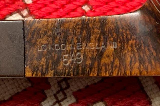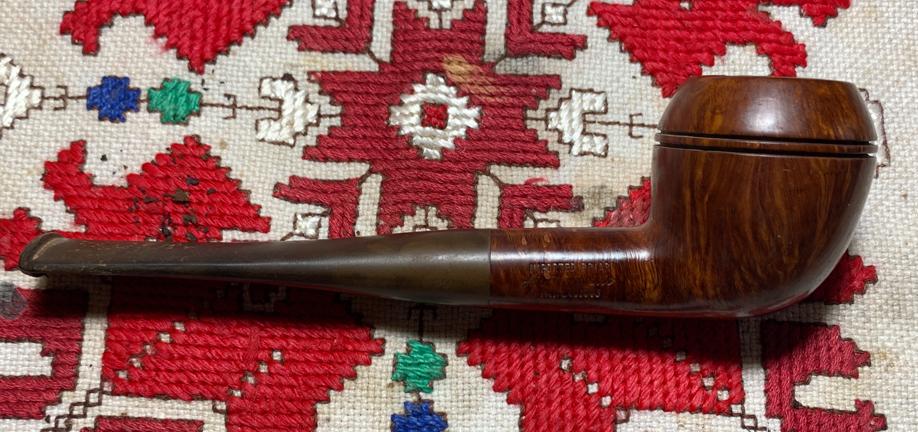 B#8622 B.W.L. “Hurlingham” Made in England 1R Billiard – This B.W.L. was pre-WW2 lower end of Ben Wade offereings. This oldie was found at the Knightsbridge Antique Mall in Northville, Michigan. The band appears to have repaired a small crack in the shank. Length: 5 7/8 inches, Height: 1 3/4 inches, Rim width: 1 1/8 inches, Chamber width: 7/8 inches, Chamber depth: 1 1/2 inches.
