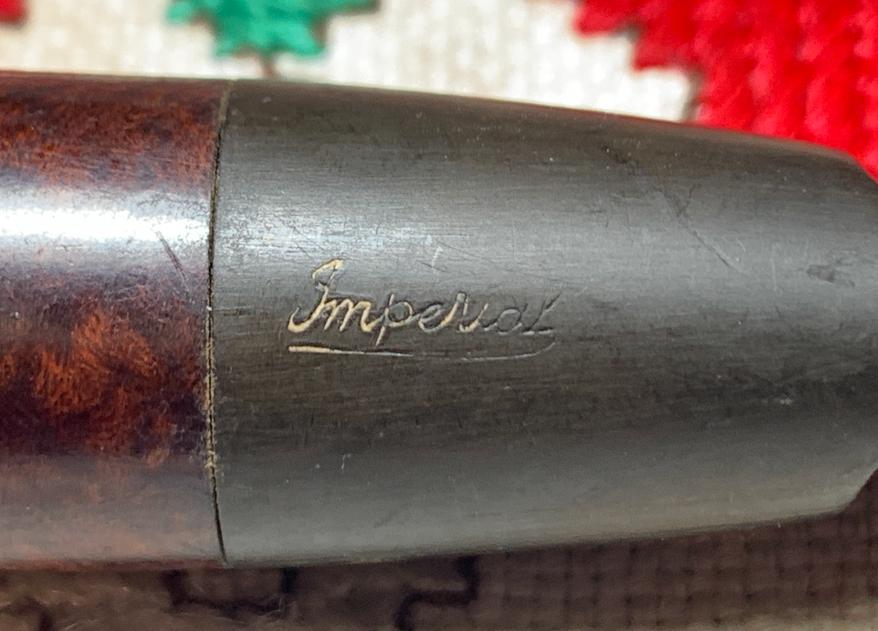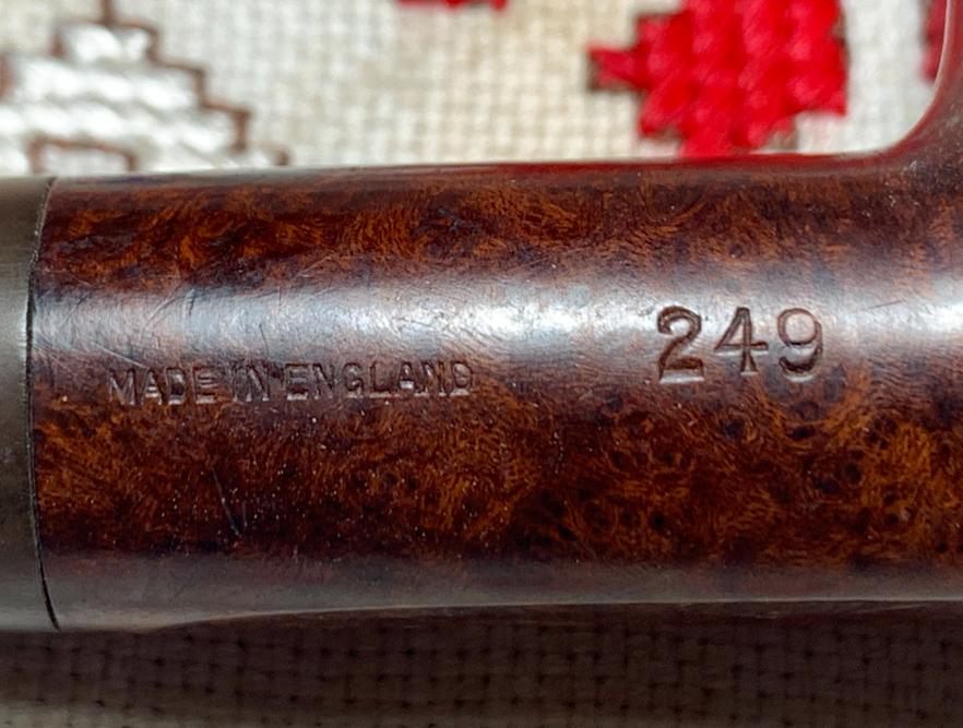 B#8560 Imperial Treble London Made Made in England 249 Apple – This pipes was acquired at the Liberty Antique Mall in Liberty, Missouri. Length: 5 1/4 inches, Height: 1 5/8 inches, Rim width: 1 1/8 inches, Chamber width: 3/4 inches, Chamber depth: 1 7/16 inches