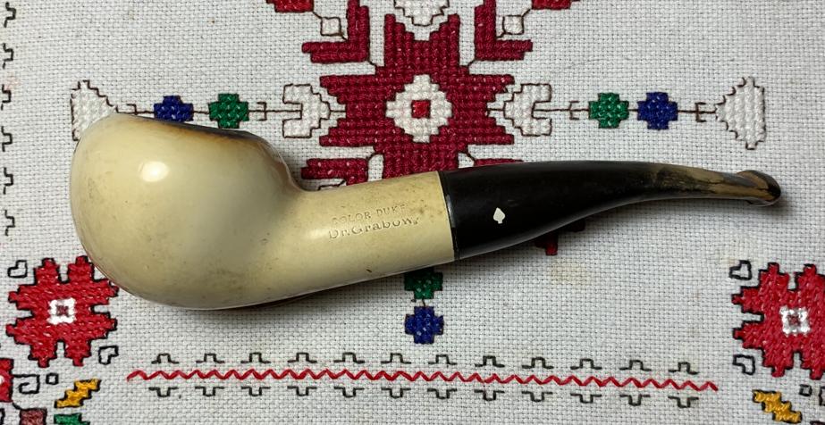 B#8627 Dr. Grabow Color Duke Ajustomatic Pat.2461905 Bulldog – Also an acquisition at the Brass Armadillo in DesMoines, Iowa. Length: 5 5/8 inches, Height: 1 3/4 inches, Rim width: 1 1/8 inches, Chamber width: 3/4 inches, Chamber depth: 1 7/16 inches.