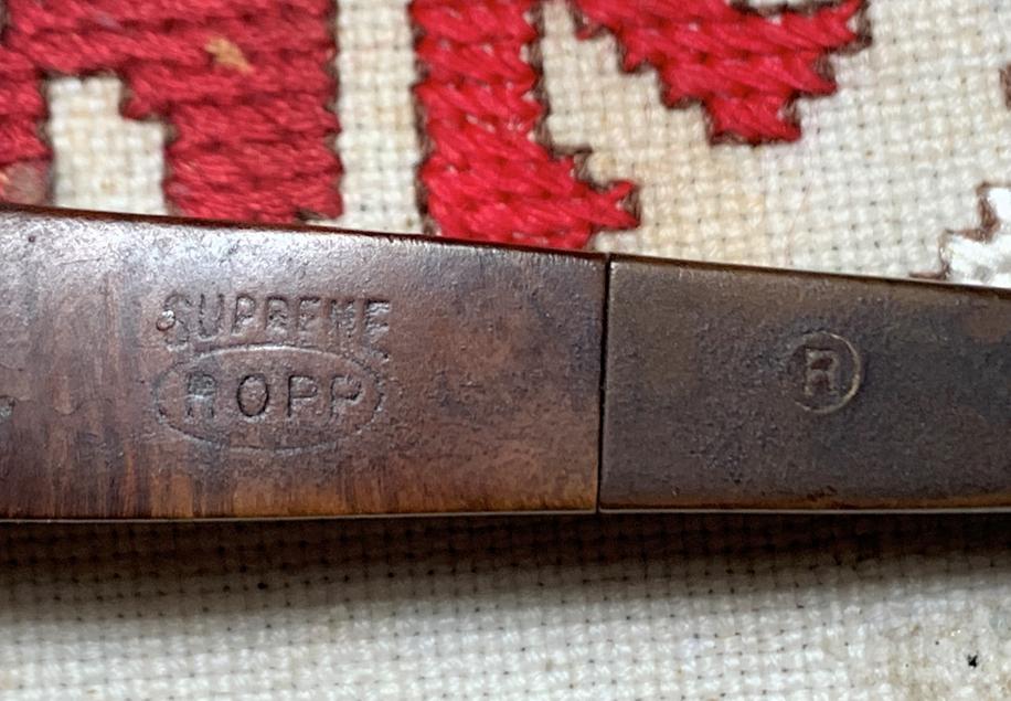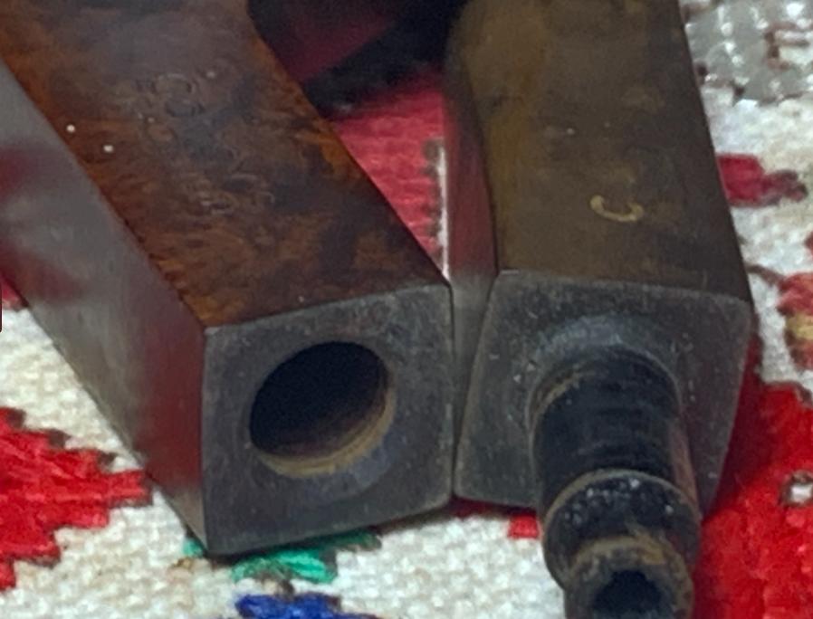 B#8602 Ropp Supreme 60 Square Shank Panel – The Ropp was found pipe picking in Sozopol, Bulgaria, on the Black Sea. Length: 5 7/16 inches, Height: 1 1/2 inches, Rim width: 1 3/8 inches, Chamber width: 3/4 inches, Chamber depth: 1 1/2 inches