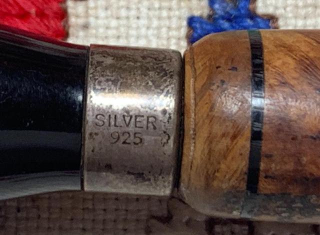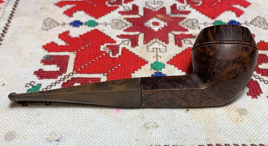 COMMISSIONED B#8610 Manuni 1 10 5 .925 Sliver Bent Egg – Also from the Burgas Lot of 7, this pipe is a mystery regarding its origins. It will also require a bit of Pipe Dreaming because he’s been through a lot – including a small crack on the top of the bowl. Length: 5 1/2 inches, Height: 2 1/8 inches, Rim width: 1 3/16 inches, Chamber width: 1 inch, Chamber depth: 1 3/4 inches