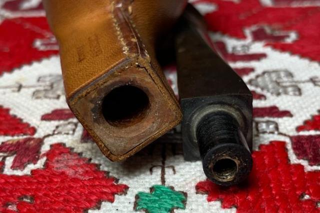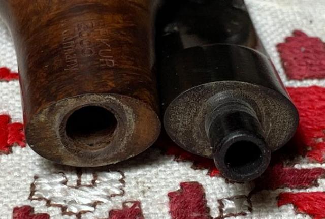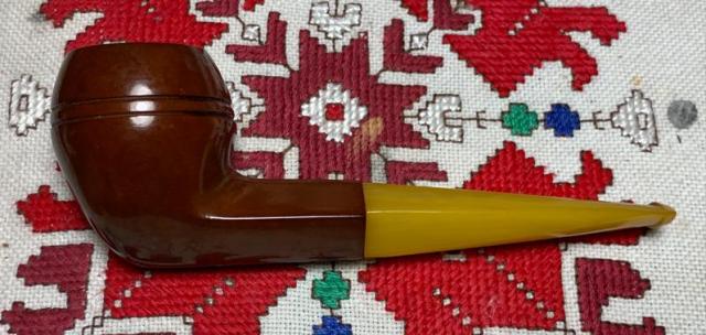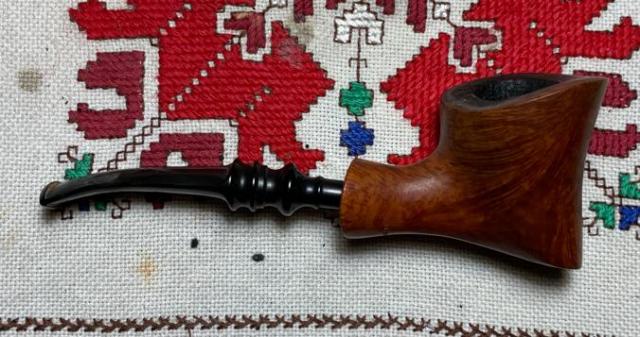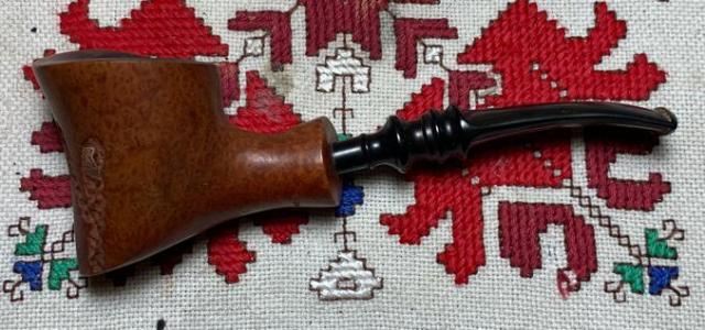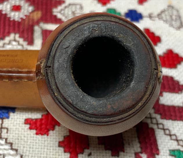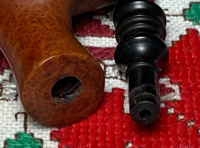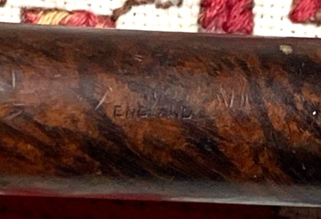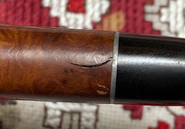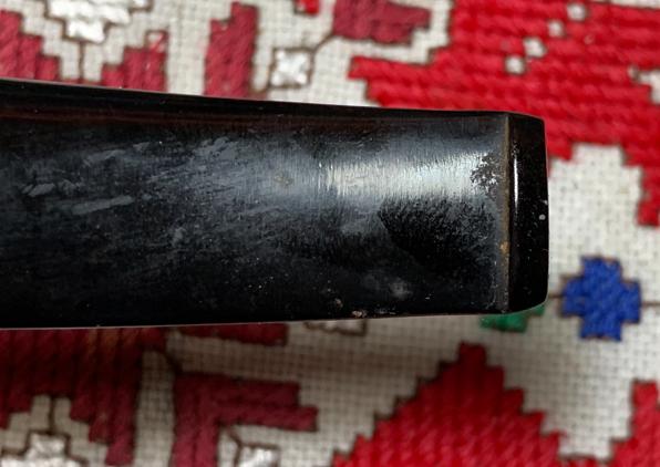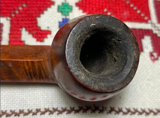 B#7457 DUKE OF KENT MEERSCHAUM ALGERIAN BRIAR MADE IN FRANCE – Length: 5 7/16 inches, Height: 1 3/4 inches, Rim Width: 1 1/8 inches, Chamber width: 3/4 inches, Chamber depth: 1 1/2 inches. The bowl has a crack on the top left rim side which may mean damage to the Meerschaum lining. It’s not possible to know until the chamber is cleaned.
