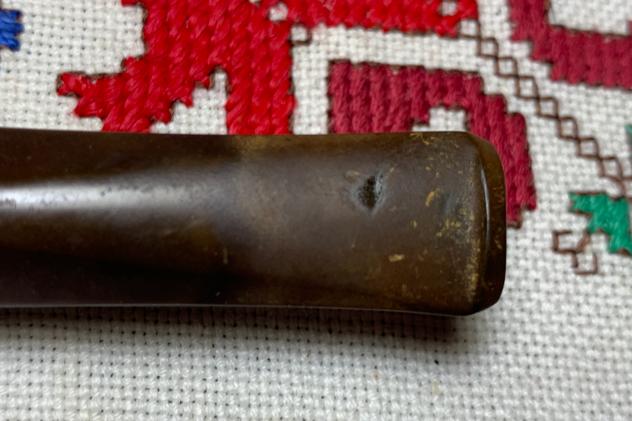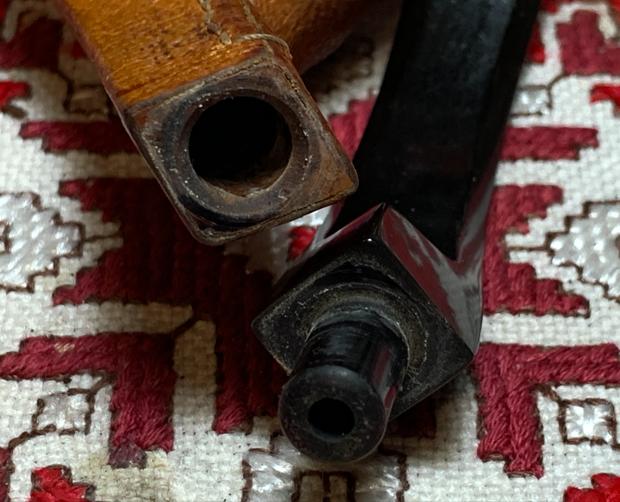 B#7458 Unbranded Imported Briar Canadian – Length: 5 3/16 inches, Height: 1 5/8 inches, Rim width: 1 3/16 inches, Chamber width: 3/4 inches, Chamber depth: 1 7/16 inches. There is an interesting crack on the left side of the shank – interesting because it’s not a normal shank crack because of the metal threaded mortise would protect the pipe from normal stress fractures with the stem. It shouldn’t be an issue to functionality.