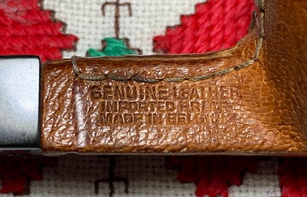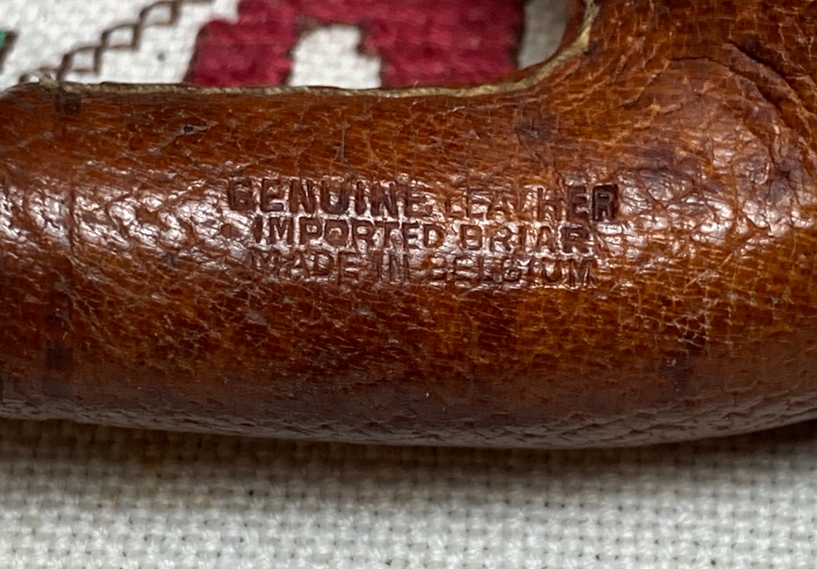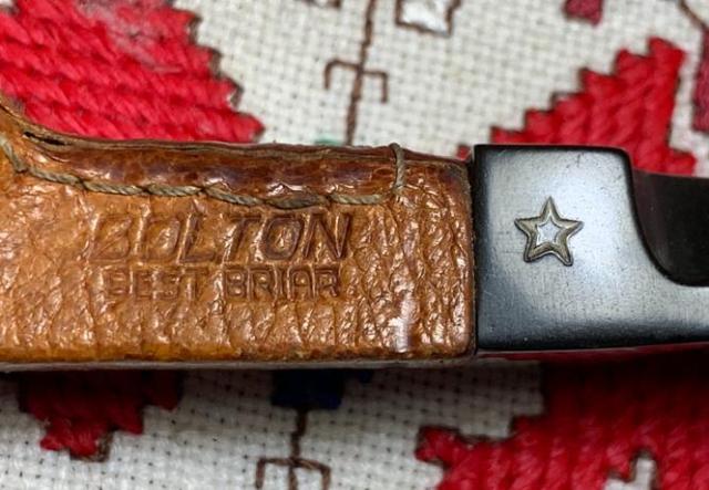 B#7468 Bolton Best Briar Genuine Leather Imported Briar Made in Belgium – Length: 5 1/2 inches, Height: 2 inches, Rim width: 1 3/16, Chamber width 3/4 inches, Chamber depth: 1 3/4 inches.