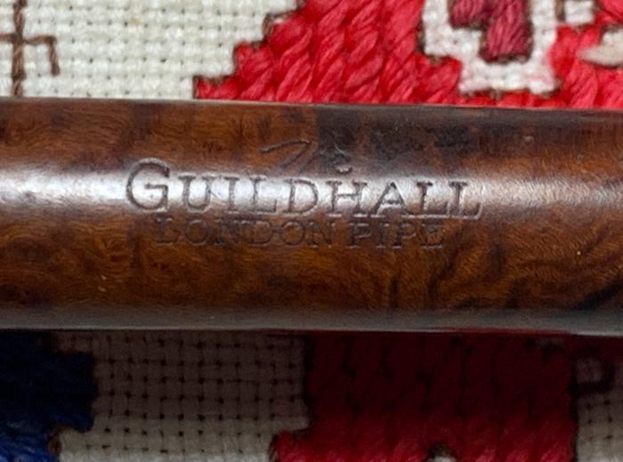 B#7450 The Guildhall London Pipe Made in London England 30 Canadian – Length: 5 13/16 inches, Height: 1 3/4 inches, Rim width: 1 3/16 inches, Chamber width: 13/16 inches, Chamber depth: 1 11/16 inches