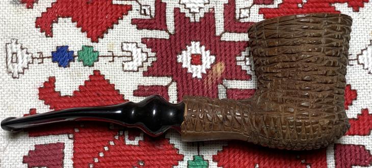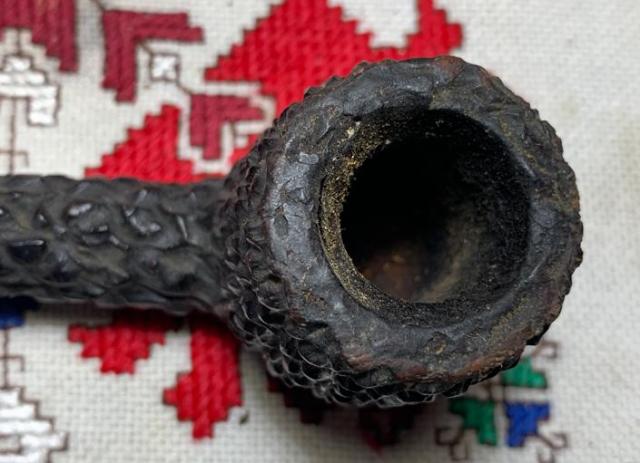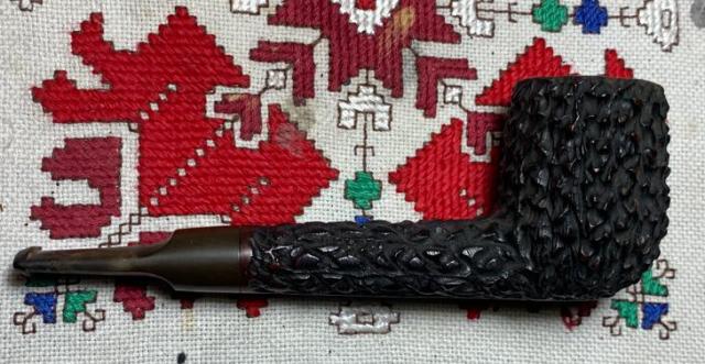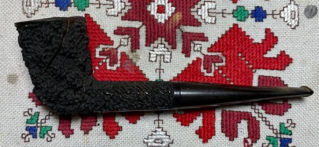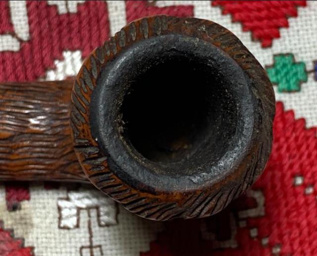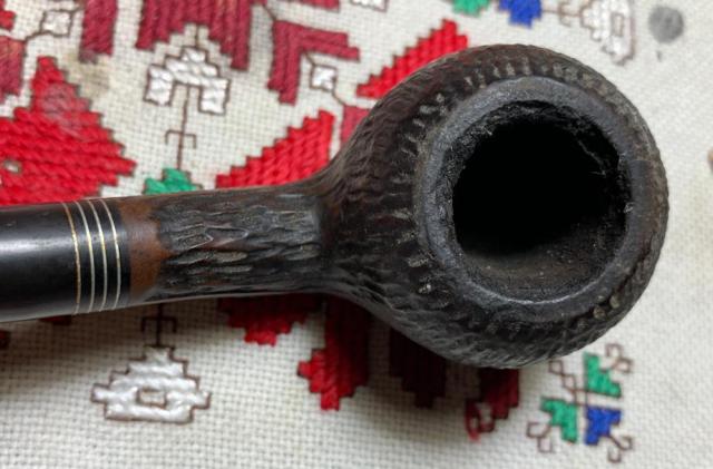 B#7445 DR EWOT 8556 GENUINE BRIAR Rusticated Dublin – Length: 6 3/8 inches, Height: 2 inches, Rim width: 1 3/8 inches, Chamber with: 7/8 inches, Chamber depth: 1 13/16 inches. This interesting rusticated Dublin takes a bit more dreaming than usual :-). The shank has a good sized crack in it which I believe can be mended.