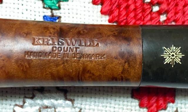 B#7452 KRISWILL COUNT HANDMADE IN DENMARK 306 Billiard – Length: 5 11/16 inches, Height: 1 7/8 inches, Rim width: 1 1/8 inches, Chamber width: 3/4 inches, Chamber depth: 1 5/8 inches.